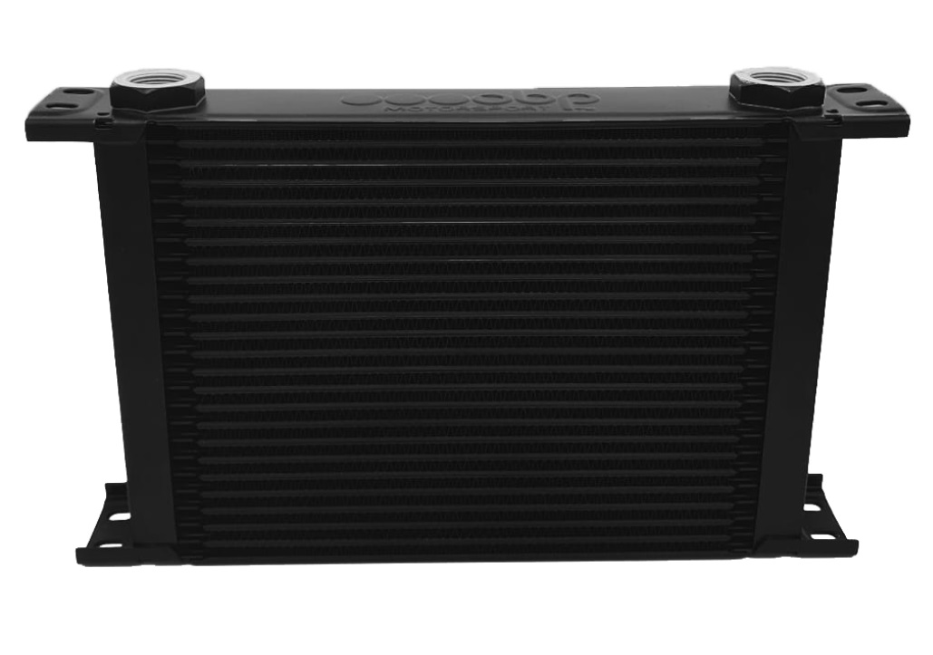 Aluminiowa chłodnica oleju OBP, dostępna w wersjach od 10 do 25 rzędów.